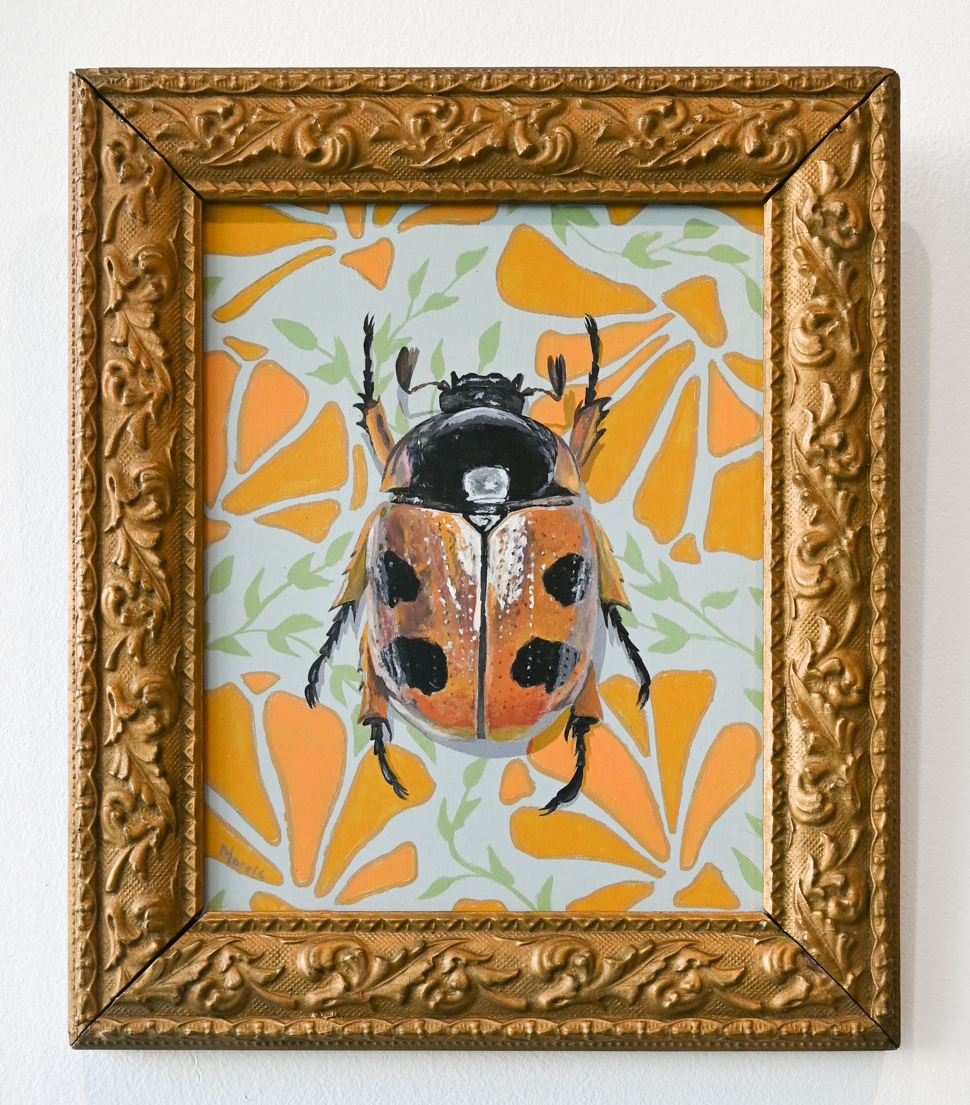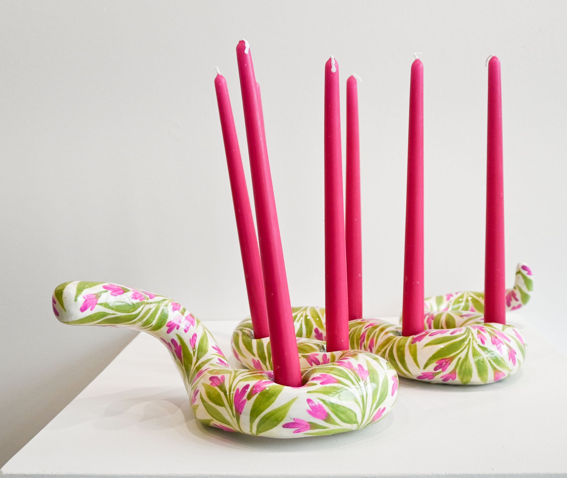 In celebration of spring, Liz Lidgett Gallery and Design has created a Garden of Earthly Delights with artists from around the country. Iowa artists Anna Flickinger, whose work is centered around photorealistic stippled fruits, and Jenna Brownlee, whose work showcases bright, bold blooms that fill the canvas and Texas artist Marcy Vreeland uses mixed media to create intricate floral arrangements. Beloved artist Hunt Slonem will bring both butterflies and his iconic bunnies to our “garden” with Missouri artist Kevin Brent Morris creating beetles on eclectic prints. Finally, Louisiana artist Paige Barnes Dorsey adds ceramic patterned snakes that hang from shelves and tables.