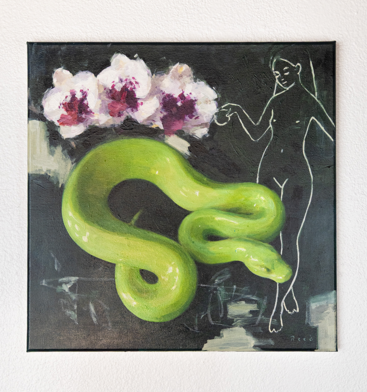 As a Des Moines resident, Rocky Reed currently paints contemporary realist pieces, featuring still lifes, plein air, portrait, and figurative subjects. Rocky makes an effort to impart a sense of poetry, technical bravura, and presence to his paintings. He selects subjects and compositions based on complexity, variety, and compelling visual relationships. He also typically renders in vegan materials when painting, such as vegan-friendly paints/pigments, glues, and supports.