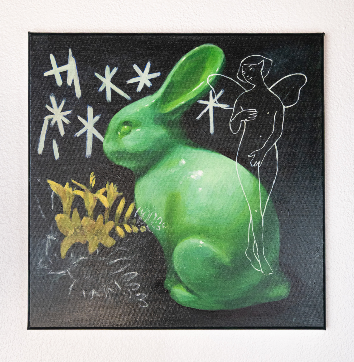 "Stargirl had a similar technical approach, but without the chalkboard aesthetic. With Stargirl I wanted to blur the line between a sculptural painting and portraiture, with a material that doesn't immediately read as either one."