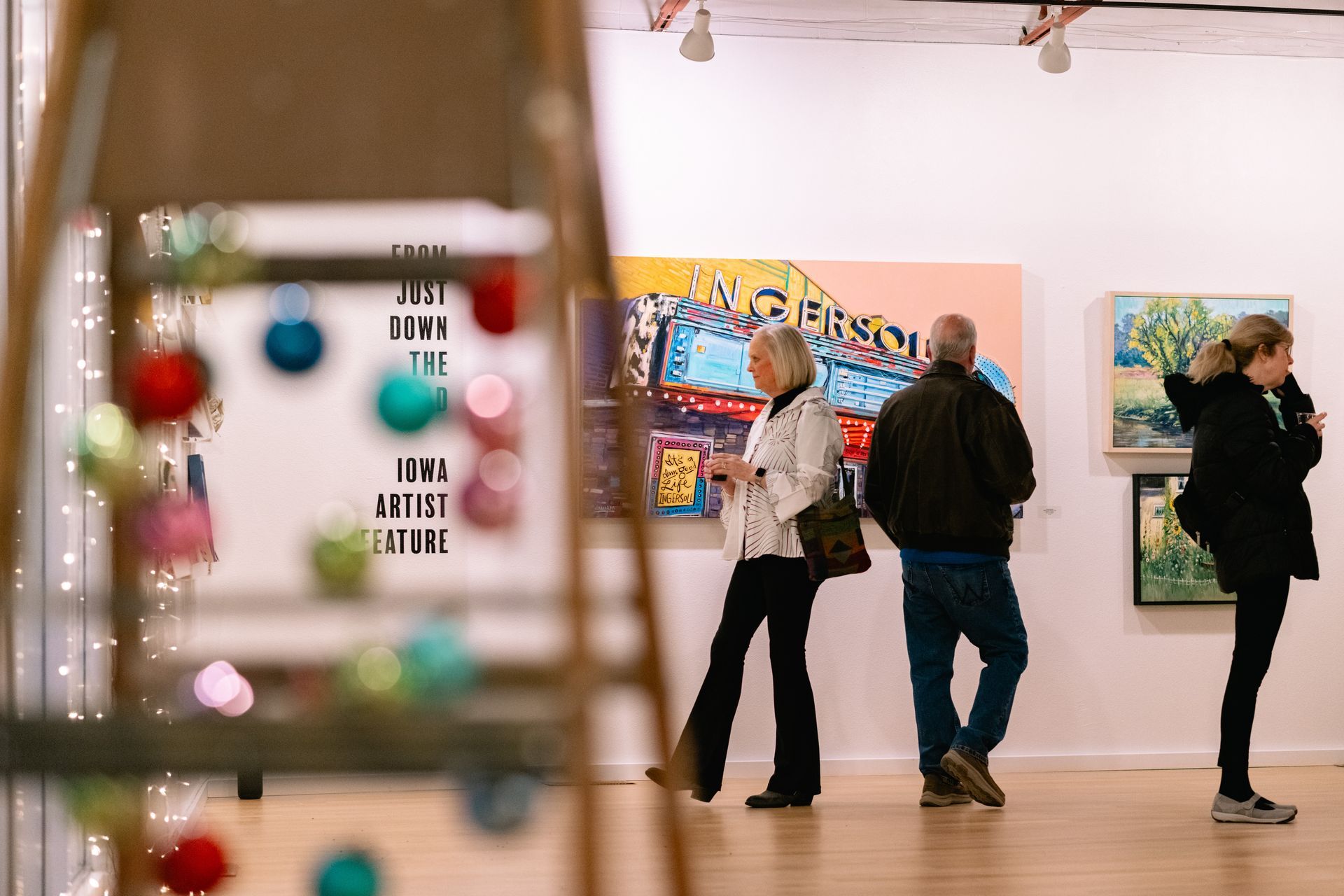 After wrapping up our 9–4, we opened the doors for our 5–7 holiday party that included snacks, drinks, and of course, a whole lot of art. Artists stopped by, families and friends came through, clients we adore popped in… it felt like the room filled with every person who’s helped make this dream real. We’d barely seen the gallery after dark until that night, and honestly, it glows especially during the holidays!