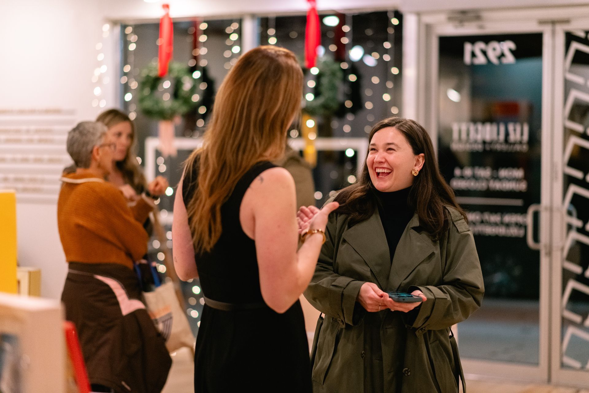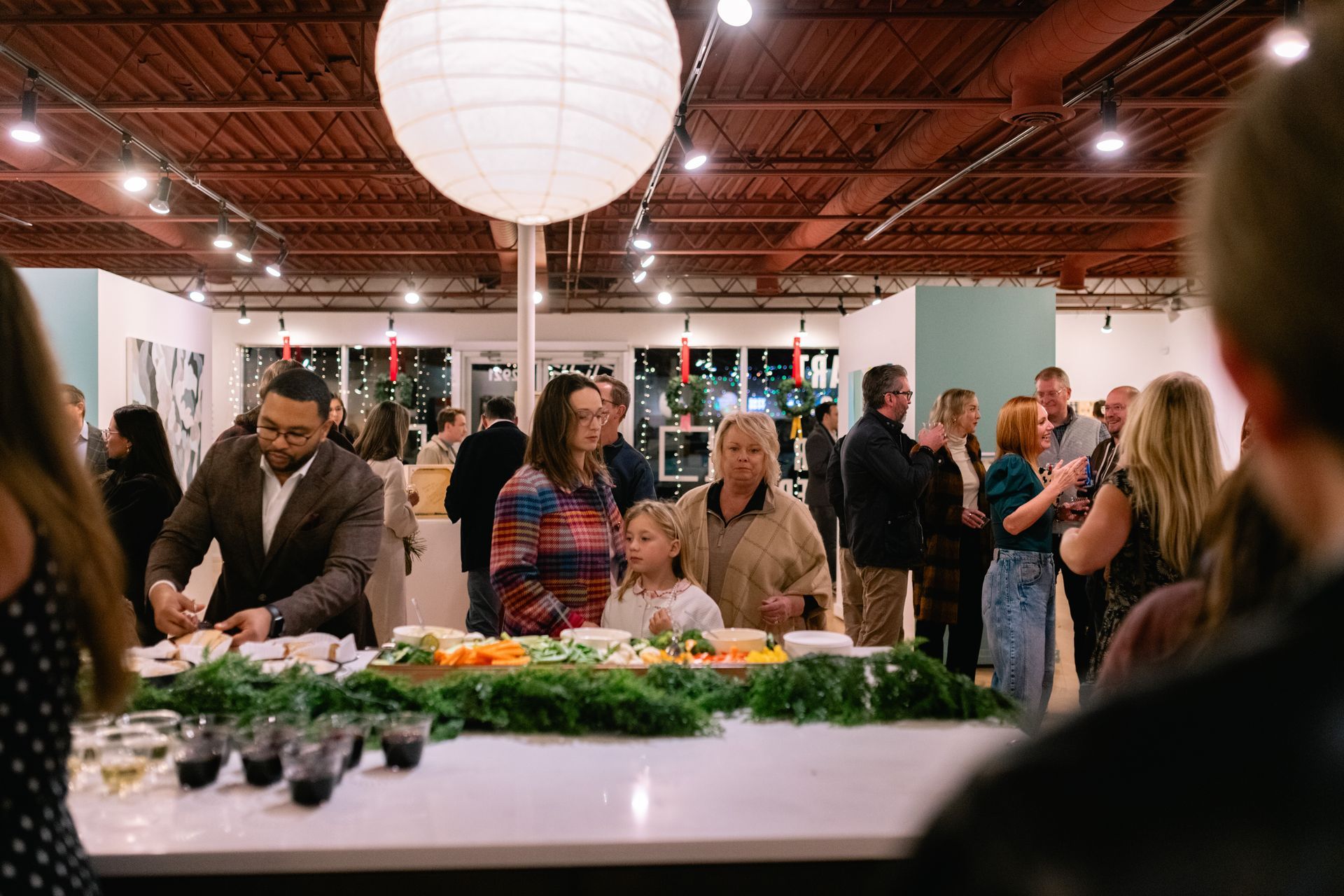 This year’s party might be my favorite yet. The extra space gave us room to breathe, to mingle, to let the art (and the people) shine. All week as we prepped (yes, with Christmas music on repeat) we couldn’t help getting excited to share this moment with you. When the doors opened, the twinkle lights, the florals, and the artwork created the perfect backdrop, but what brought the space to life were the conversations and the connections happening in every corner.