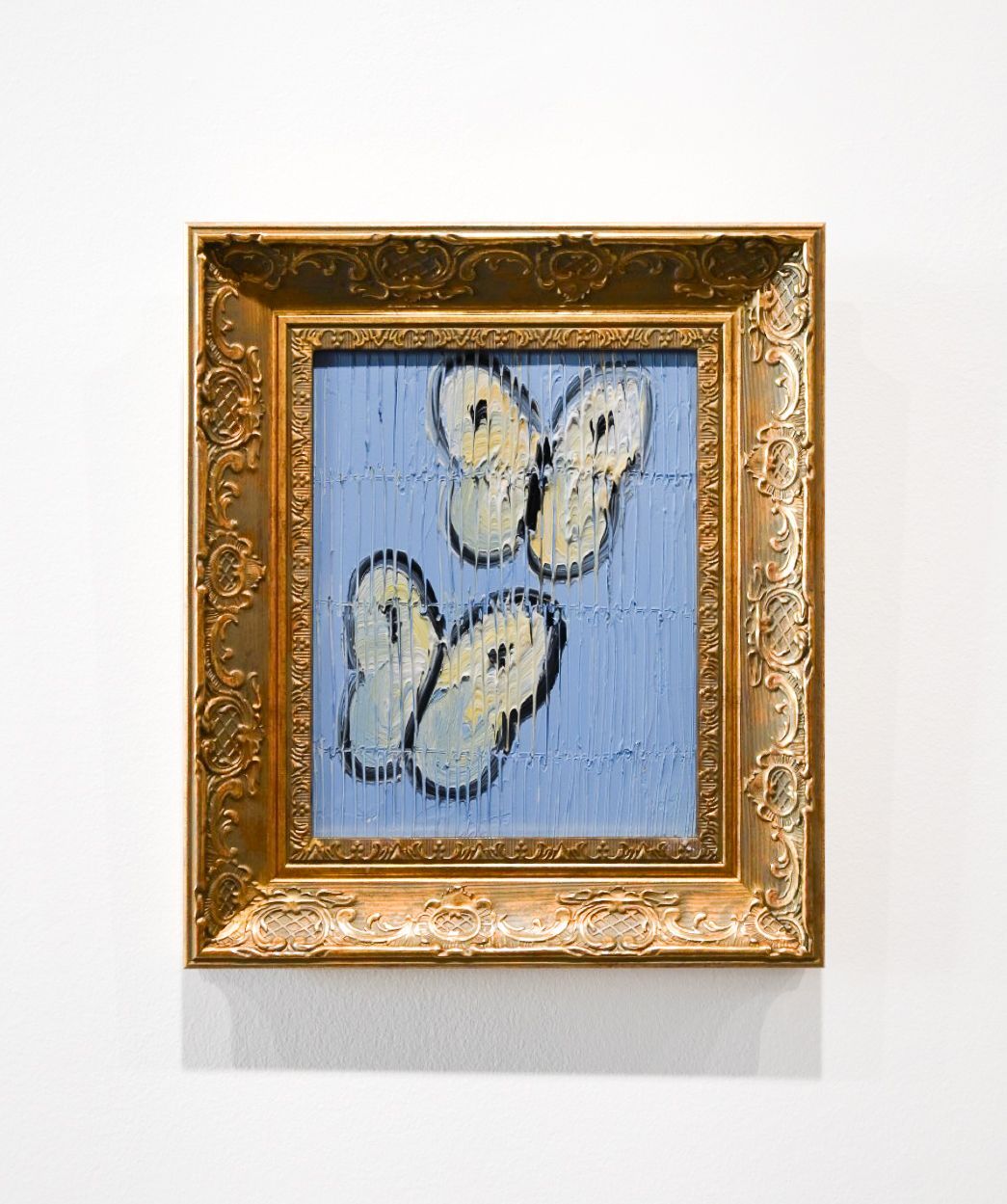 HUNT SLONEM (b. 1951, Kittery Maine) is an American artist known for his neo-expressionist paintings of butterflies, rabbits, and tropical birds. The artist creates exotic forms with expressive and highly textural brushstrokes that are full of intense color. His compositions often consist of flat spaces with simple forms pushed to the front of the picture plane. His work tends to embrace the ephemeral beauty of nature, a characteristic that brings a nurturing, spiritual effect to his painting suggesting metamorphosis, repose, and a sensation of touching the illimitable. In addition, Slonem works with installations, sculpture, and the restoration of historic spaces, often pairing his paintings with collected objects and various materials to create colorfully monumental environments that are widely noted for their otherworldliness.